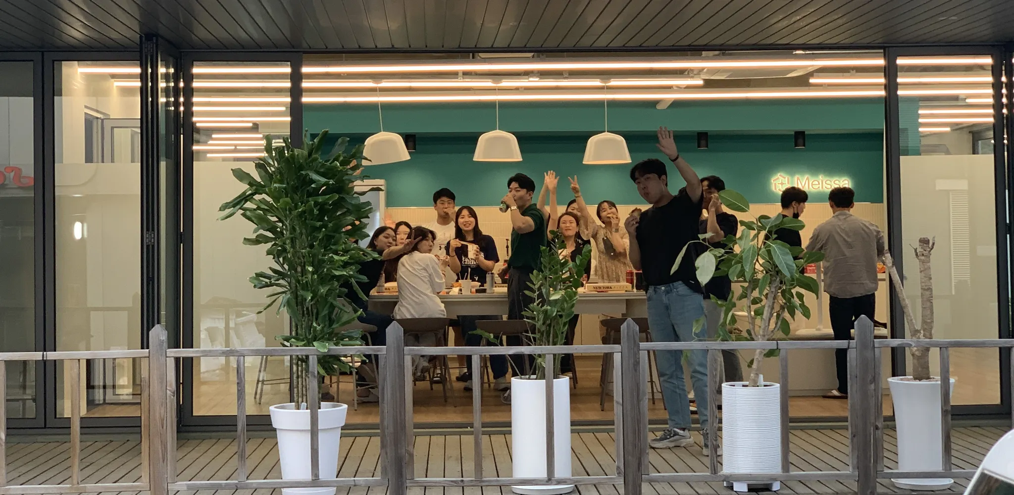 월 2회, 5인 이상 회식 진행 시 1인당 5만원 회식비를 지원하고 있어요